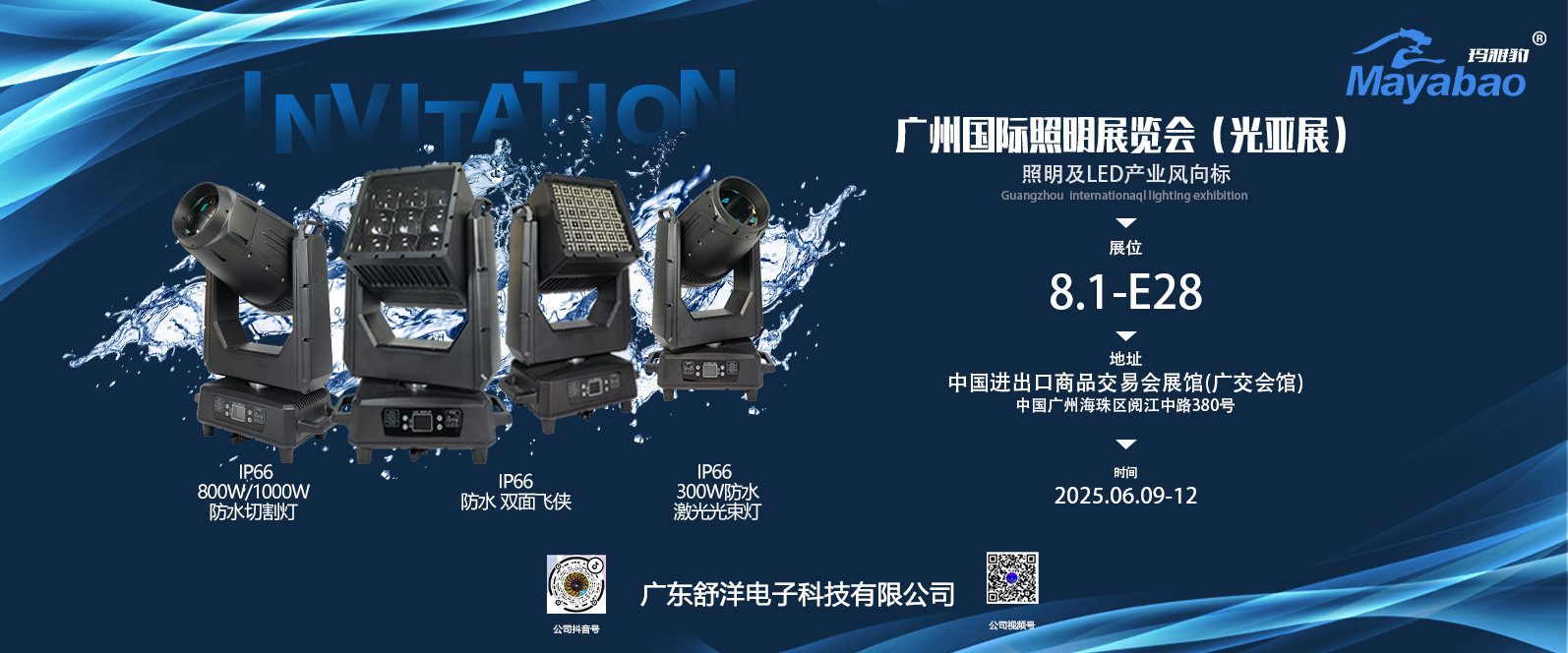 详情尊敬的每位顾客朋友们,再次感谢您长期以来对舒洋灯光的支持和信赖!上海国际专业灯光音响展览会将于2019年10月10日-13日在中国·上海·上海新国际博览中心举行,舒洋灯光将在此次展会期间推出多款舞台灯(摇头光束灯、摇头染色灯、变焦面光灯等)在此,我们舒洋灯光诚邀您莅临舒洋展位参观指导!380W摇头光束灯12*40W摇头染色灯COB变焦面光灯LED超级光束灯LED无线电池WIFI洗墙灯200W新款成